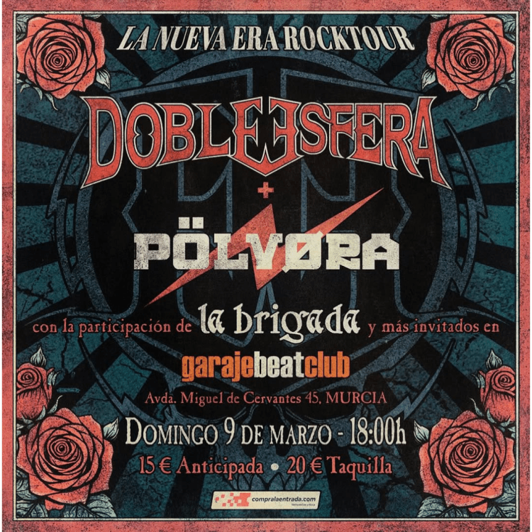 El domingo 9 de marzo vamos a vivir una tarde/noche inolvidable, una gran noche de Rock n’ Roll, Hard Rock y Heavy Metal. Doble Esfera presenta su nuevo álbum, La Nueva Era del Rock, y lo harán acompañados de los valencianos Pölvora y de invitados ilustres de la escena murciana. Por supuesto, lo harán en su casa, en la mítica sala Garaje Beat Club.