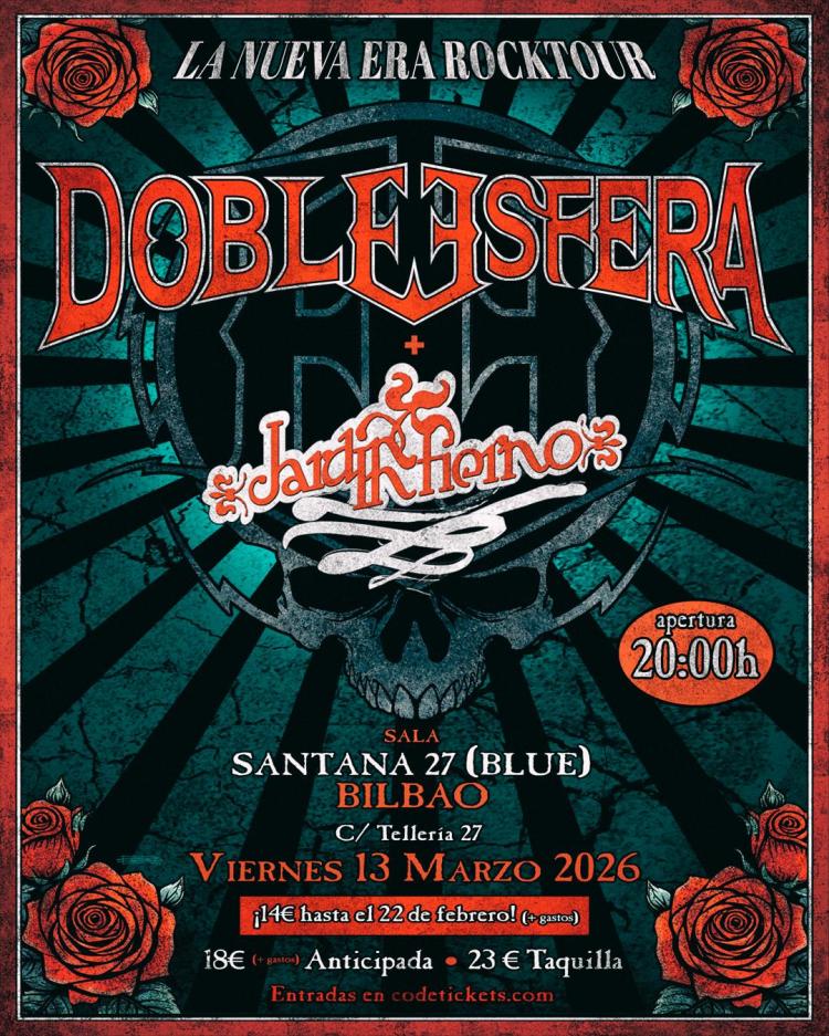 El viernes 13 de marzo, la banda murciana Doble Esfera se desplaza a Bilbao para seguir presentando su último trabajo y compartir otra gran noche de rock, hard y metal. En esta ocasión compartirán escenario con Jardín Infierno, una fantástica banda de blues/hard rock formada en 2008 en el barrio bilbaíno de Rekalde, liderada por la genial frontwoman María Argüeso, cuyo último álbum es «Papel», publicado en 2024